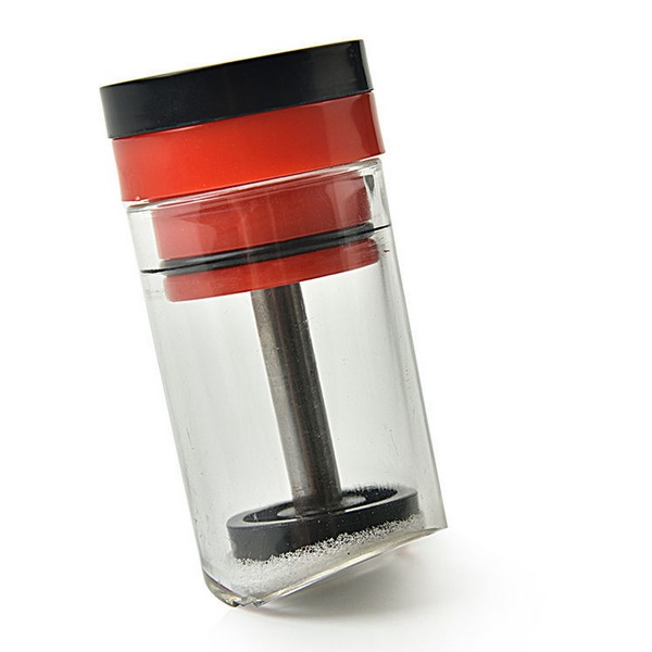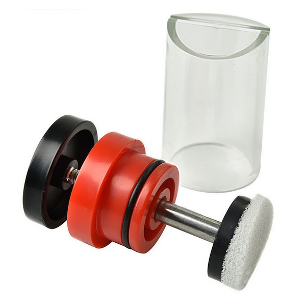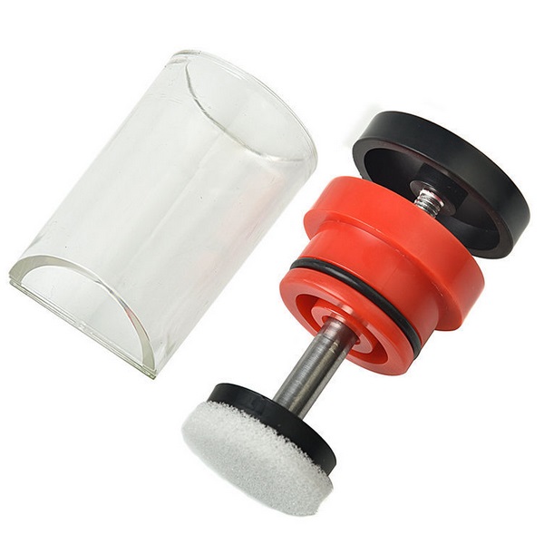 Plastový aparát s piestikom na značkovanie matiek s dĺžkou valca 8 cm a priemerom 4 cm.