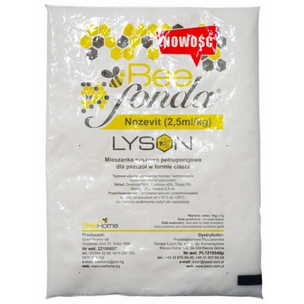 Bee Fonda Nozevit je skvelé krmivo obsahujúce Nozevit. Nozevit je prírodný produkt, ktorý pomáha posilňovať a udržiavať črevnú integritu včiel, ako aj zdravie a vitalitu včiel. Nozevit nie je liek! Je vyrobený z čistej vody a prírodných rastlinných polyfenolov. Krmivo Bee Fonda Nozevit obsahuje 92% jednoduchých cukrov fruktózy a dextrózy. Produkt je pripravený bez zahrievania surovín. Každé balenie (1kg) obsahuje 2,5 ml Nozevitu.