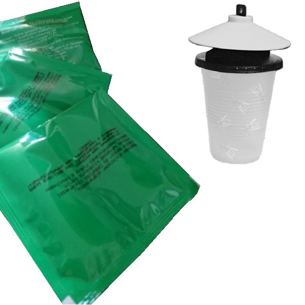 - obsah jedného sáčku s feromónovou návnadou vysypte do nádoby pasce