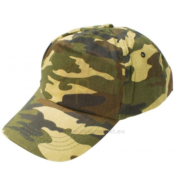 Maskáčová čapica s tvrdým šiltom a prevzdušňovacími otvormi. Nastavovanie veľkosti v zadnej časti čiapky pomocou suchého zipsu.