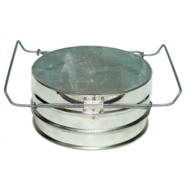 Okrúhly dvojdielny kovový cedník s priemerom 20,5 cm je zložený z dvoch sít a oba sú rovné. Má nastaviteľnú rukoväť. Veľkosť oka horného sita je 2 mm, spodné sito má veľkosť oka 1 mm.