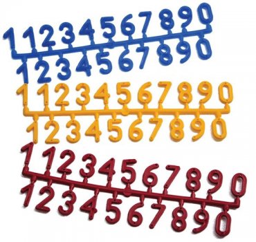 Plastové číslice na očíslovanie úľov. Jedno balenie obsahuje 3 krát číslicu 1, ostatné číslice sú po dva krát.