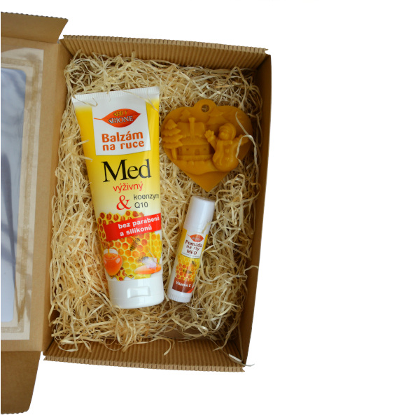 Darčekové balenie L1 obsahuje kozmetiku a sviečku zo včelieho vosku.