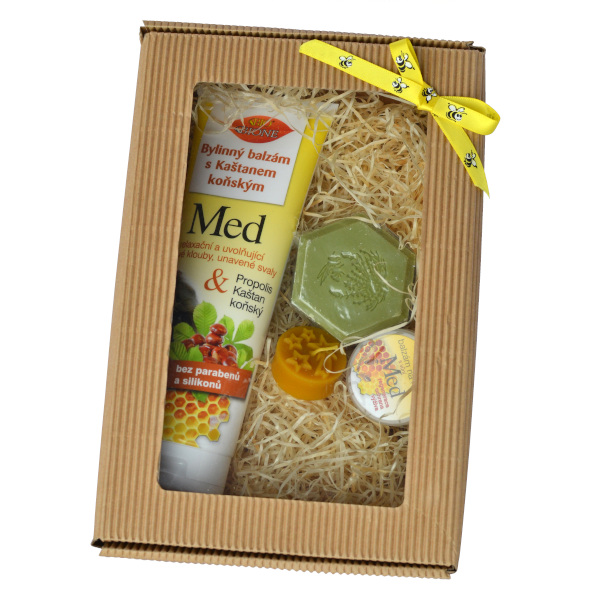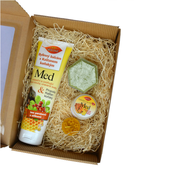 Darčekové balenie L3 obsahuje mydlo, kozmetiku a sviečku zo včelieho vosku.