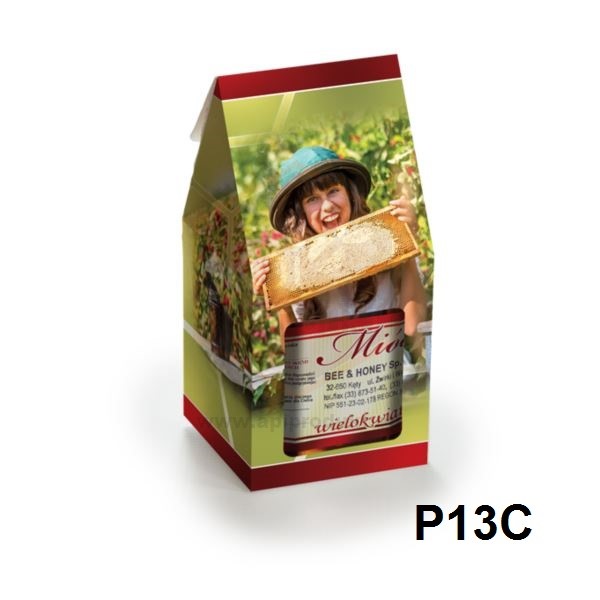 Dekoračný kartón pre pohár na med s objemom 150 – 200 ml s rôznymi včelárskymi motívami. Na protiľahlých stenách je obdĺžnikový