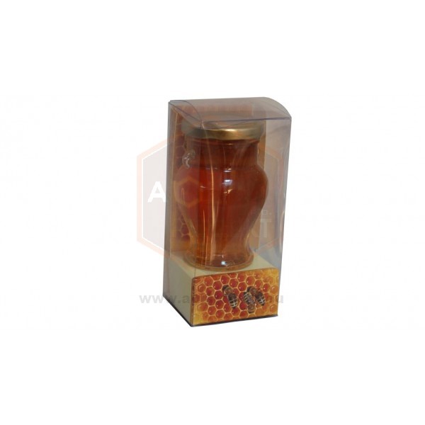 Priehľadný dekoračný box s amforkou s objemom 106 ml je určený pre tých, ktorým záleží na atraktívnom zabalení včelích produktov ako med alebo včelí peľ.
