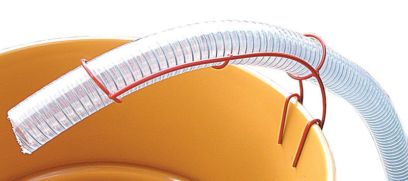 Maľovaný držiak hadice čerpadla s priemerom 40 mm je praktická pomôcka, ktorá sa upevní na okraj vedra alebo stáčacej nádoby a udržuje tak hadicu nasmerovanú do vnútra nádoby.