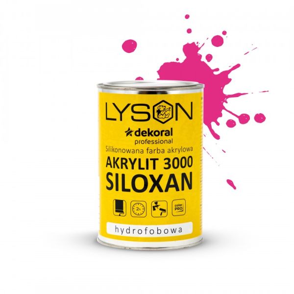 Ružová akrylová farba Akrylit 3000 Siloxan je vhodná pre natieranie úľov. Farbu je možné tiež použiť pre natieranie železobetónových konštrukcií, ako aj renovácie zatepľovacích systémov. Tento produkt môže byť použitý aj na maľovanie vnútorných stien. Farba sa dodáva v plechovke s objemom 1l.