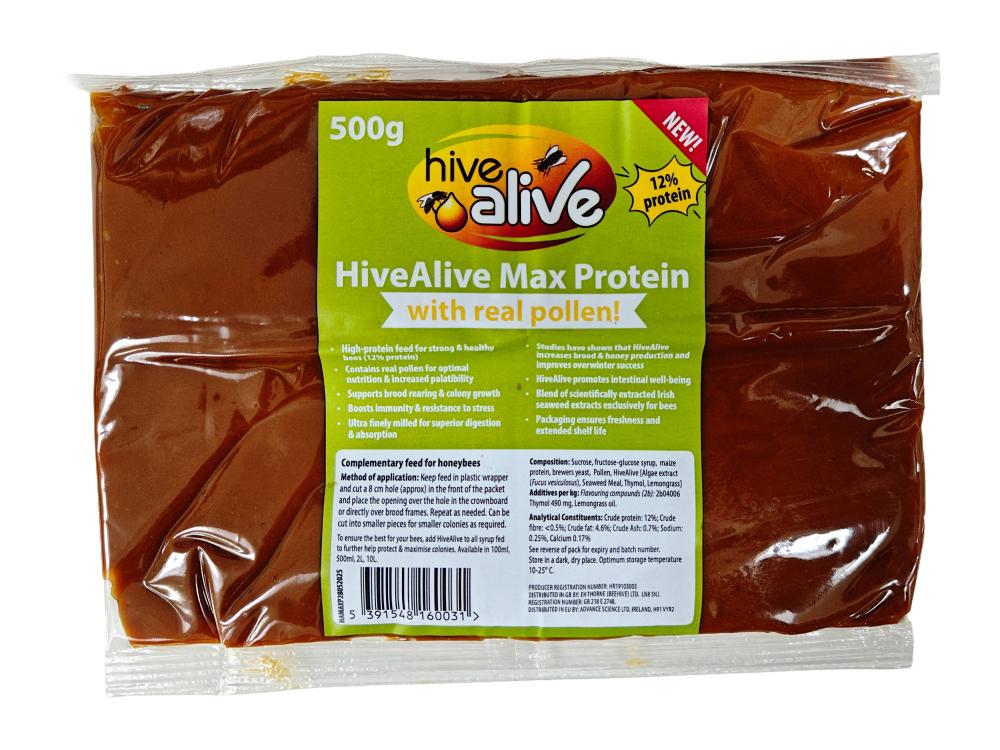 Cukromedové proteínové cesto s peľom HIVE ALIVE je vysoko kvalitné krmivo na dokrmovanie včelích rodín. Krmivo sa odporúča pre výživu včiel v jesennom, zimnom a jarnom období.