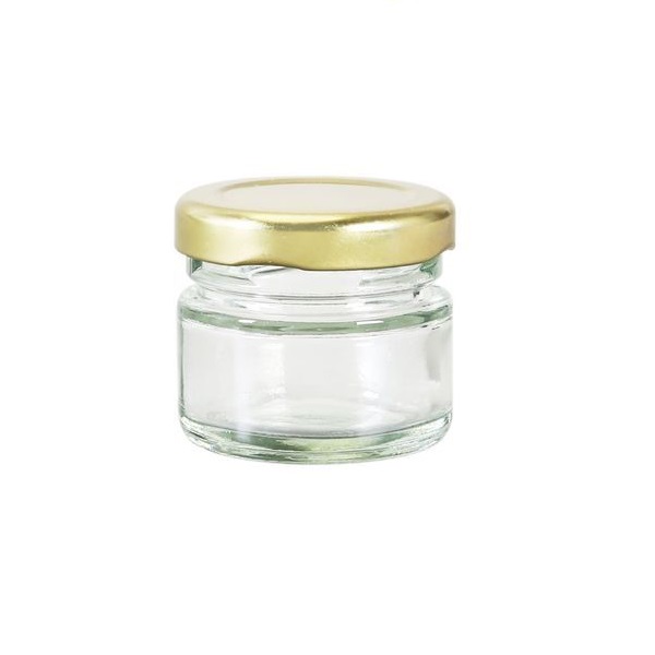 Sklenený pohárik s objemom 30ml a závitovým uzáverom TWIST TO 43. Pohár je dodávaný spolu s kovovým viečkom v zlatom prevedení. Uvedená cena je za 1 ks pohára.