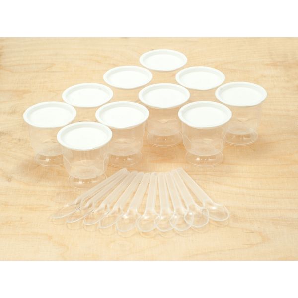 Obsah balenia: 10 x plastový pohárik, 10 x plastový vrchnák, 10 x plastová lyžička