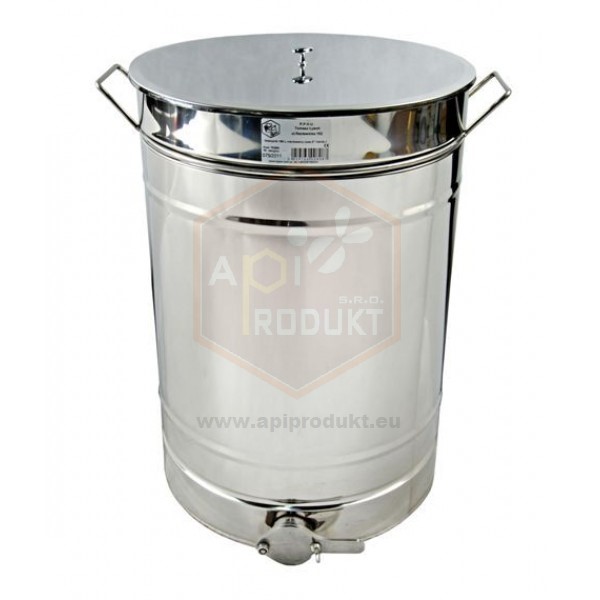 Nerezová stáčacia nádoba rady CLASSIC Line s objemom 150l (na 205 kg medu) má nerezové rukoväte, nerezový nožový výpustný ventil s priemerom 2" a nerezové veko s madlom. Bubon nádoby s dnom sú vyrobené z nerezového plechu s hrúbkou 0,6 mm a sú spájané bez zvárania s použitím spájacej technológie, vďaka ktorej to vyzerá veľmi esteticky.