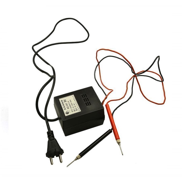 Zatavovací transformátor pre pocínovaný drôt na zatavovanie medzistienok, ktoré sú k rámikom upevnené pomocou pocínovaného drôtu.